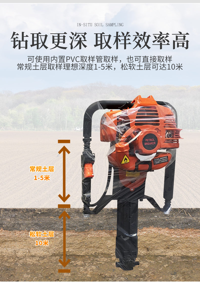 ● 常規(guī)土層取樣理想深度1-5米,松軟土層可達(dá)10米!